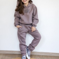 Σετ 2 τεμαχίων που αποτελείται από φούτερ μπλούζα με κουκούλα και κολάν. Εκρού φούτερ μπλούζα με τύπωμα στο μπροστινό μέρος της μπλούζας, μανσέτες στα μανίκια και λάστιχο στο τελείωμα της . Κολάν με χνούδι σε απόχρωση του πούρου με λάστιχο στην μέση. Τα χρώματα είναι ανεξίτηλα. Πλένεται στο πλυντήρι..