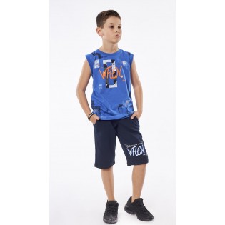 Σετ φόρμα που αποτελείται από φούτερ μπλούζα και φόρμα παντελόνι. Φούτερ μπλουζάκι σε απόχρωση του μπλέ με τύπωμα στο μπροστινό μέρος. Διαθέτει μανσέτες και λάστιχο στο τελείωμα της μπλούζας. Τυπωμένο παντελόνι φόρμας με λάστιχο στην μέση και στον αστράγαλο. Πλένεται στο πλυντήριο στους 40OC...